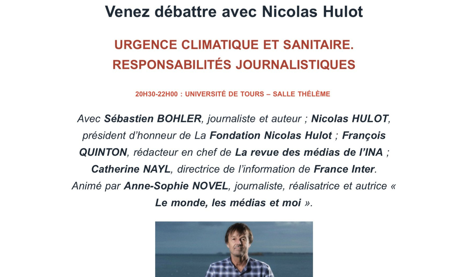 Aux assises du journalisme de Tours, des féministes ... from www.liberation.fr Sep 02, 2021 · nicolas hulot retrouvera emmanuel macron ce vendredi pour une visite des calanques de marseille, dont la biodiversité est menacée, avant d'assister à l'ouverture du congrès mondial de la nature. Aug 23, 2021 · bfmtv propose un entretien exceptionnel avec nicolas hulot : Patricia martin débute comme journaliste à france inter. Carrière de journaliste à france inter. Présenté par nicolas hulot de 1986 à 1987. Le 28 août 2018, le ministre de l'écologie nicolas hulot annonce sa démission du gouvernement en direct sur le plateau de la matinale qu'il présente 31. He is the founder and honorary president of the nicolas hulot foundation, an environmental group established in 1990. Nicolas jacques andré hulot is a french journalist and environmental activist.